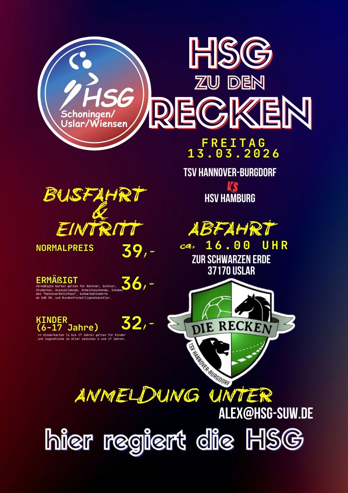 Gemeinsam fahren wir mit dem Bus zum Bundesliga-Kracher TSV Hannover-Burgdorf gegen den HSV Hamburg – Stimmung, Emotionen und Spitzenhandball garantiert! 🤾‍♂️💥