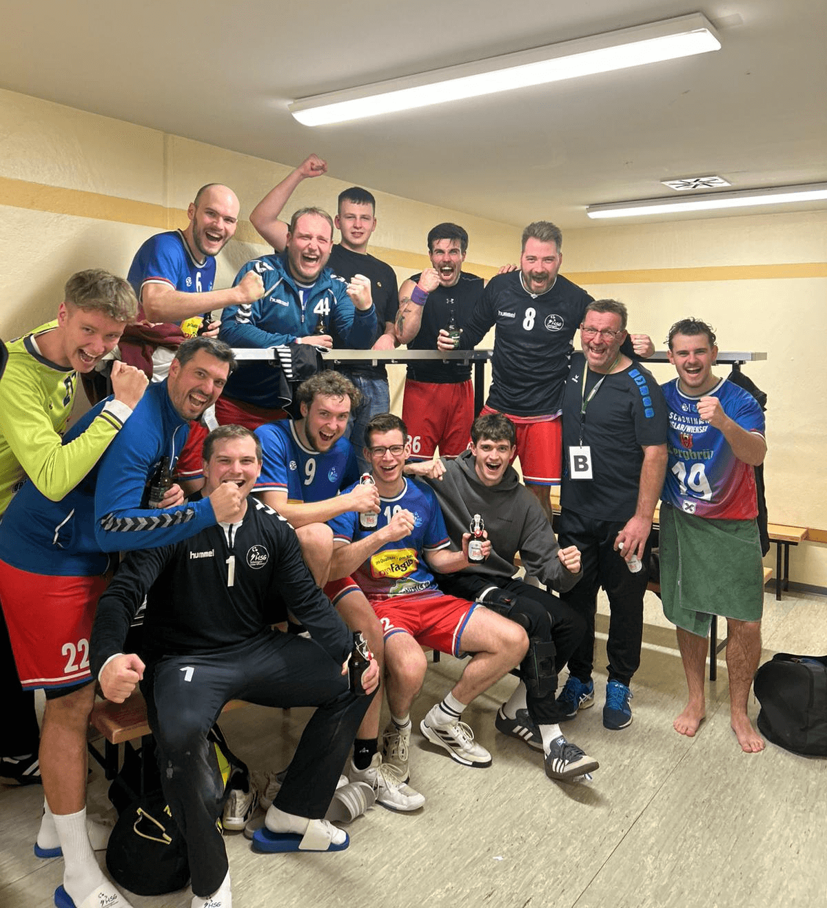 Dank einer großartigen Mannschaftsleistung blieben wir bis zum Schluss dran und erzielten zehn Sekunden vor dem Ende sogar den Ausgleichstreffer. Ein über das gesamte Spiel hinweg bärenstarker Flo Lindemann parierte die letzten beiden Torwürfe der Gegner – und nach der Schlusssirene gab es kein Halten mehr.